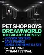 Pet Shop Boys are delighted to announce that special guests Scissor Sisters will also be on the bill at Lytham Festival on Saturday, 4th July 2026, along with a DJ set by Dave Pearce.